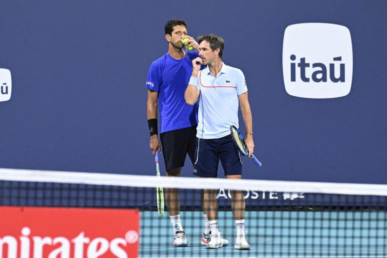 Blessé au coude à Indian Wells, Nicolas Mahut est rentré en France. Mais Edouard Roger-Vasselin avait quand même pris part au Masters 1000 de Miami. Comme le règlement le lui autorise, le Baulois avait trouvé un remplaçant, en l'occurrence le redoutable Brésilien Marcelo Melo, 40 ans. Non tête de série, la paire franco/brésilienne a d'abord battu Santiago Gonzalez, équipier d'ERV EN 2023, et l'Anglais Neal Skupski (n°3), puis Christopher Eubanks et Ben Shelton. Les deux hommes ont néanmoins été stoppés en quarts de finale ce mercredi par le Croate Ivan Dodig et l'Américain Austin Krajicek (n°2).