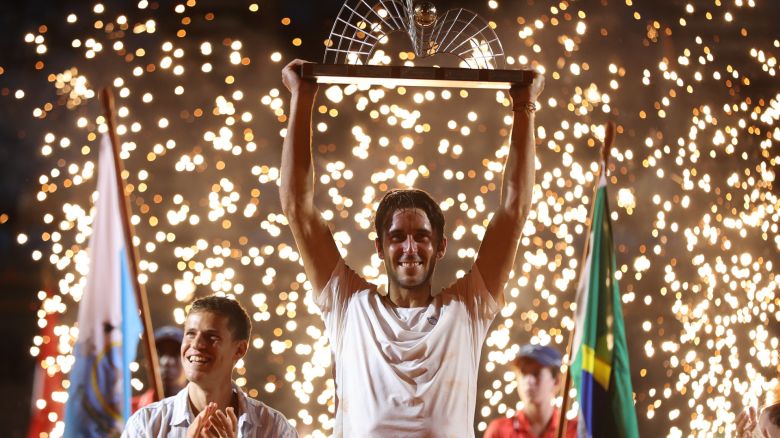 Etcheverry a d’abord dû reprendre et terminer sa demi-finale face à Vit Kopriva, interrompue la veille alors que le Tchèque menait 5-4 dans le premier set. L’Argentin s’en est sorti au bout du suspense, 4-6, 7-6(2), 7-6(4) après 3h43 de combat. Ensuite, il a fallu enchaîner quelques heures plus tard contre Tabilo pour s’offrir le titre de sa carrière. Bousculé d’entrée, l’Argentin a laissé filer la première manche avant de remettre de l’ordre dans ses schémas : plus de poids dans la balle, plus de premières au bon moment, et une gestion plus froide des points importants au tie-break du deuxième set. Derrière, Etcheverry a fini par prendre le dessus dans un troisième acte très physique pour conclure sur la terre battue du Jockey Club Brasileiro, 3-6, 7-6(3), 6-4. Au total, Etcheverry a passé 6h49 sur le court demi-finale et finale, additionnées. Soit près de 6h sur le court dimanche. L'Argentin est 33e mondial avec un bond de 18 places.