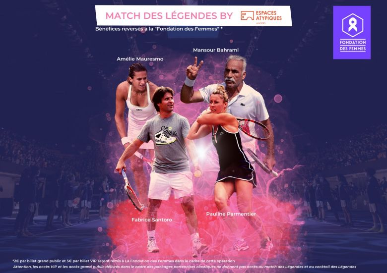 Ambassadeur de la fondation, le directeur du tournoi tenait à associer cet engagement à son tournoi. Un match en double mixte réunira donc quatre joueuses et joueurs de renom : Amélie Mauresmo, Pauline Parmentier, Fabrice Santoro et Mansour Bahrami, le fondateur du fameux Trophée des Légendes. "Réunir Amélie et Fabrice autour de Mansour à Angers c'est exceptionnel. Pour ceux qui connaissent un peu les exhibitions d'anciens joueurs autour de Mansour, c'est vraiment un super moment, un vrai show" a annoncé Nicolas Mahut. Ce "Match des Légendes" se jouera le samedi 10 décembre à l’Arena Loire de Trélazé. Les bénéfices du match (la prévente est à 10€, le billet à 15€) seront reversés à la Fondation des femmes.